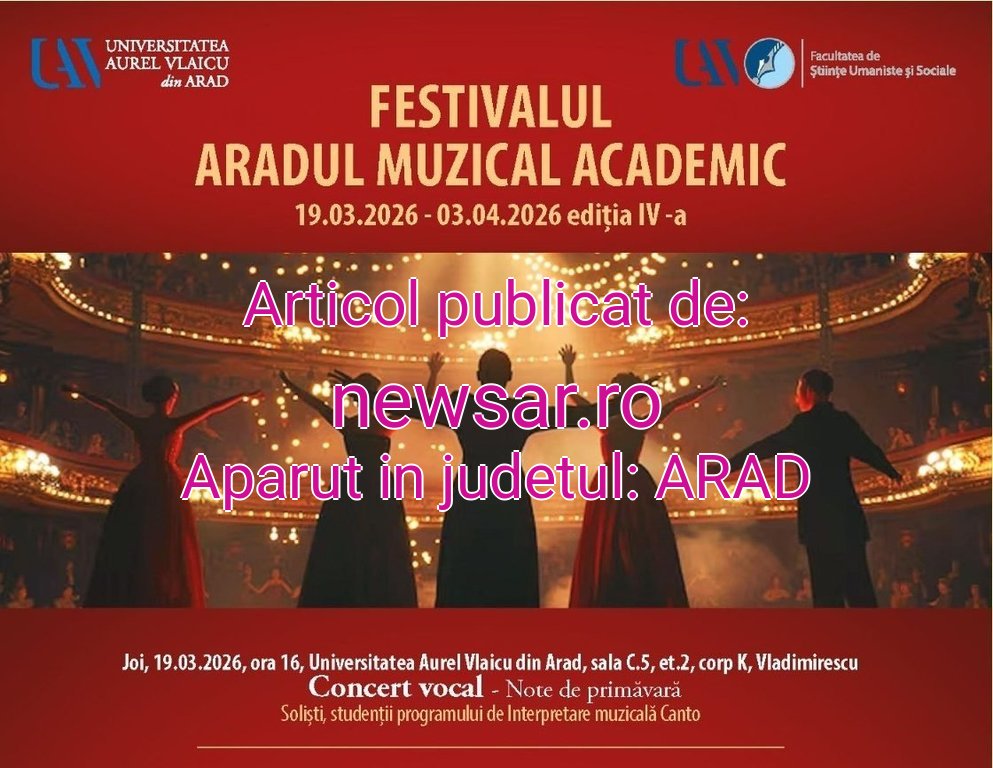 Universitatea „Aurel Vlaicu” din Arad, prin Facultatea de Științe Umaniste și Sociale, organizează în perioada 19 martie – 3 aprilie cea de-a IV-a ediție a Festivalului „Aradul Muzical Academic”, un eveniment dedicat excelenței artistice, dialogului interdisciplinar și promovării valorilor academice în domeniul muzicii.