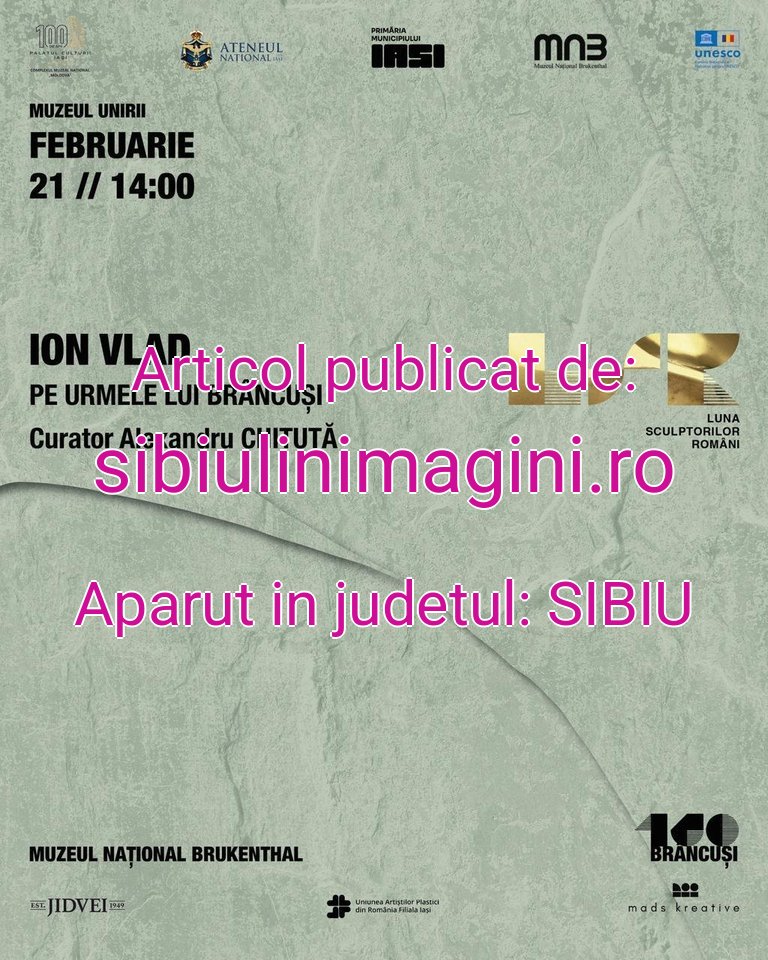Muzeul Național Brukenthal continuă parteneriatul în cadrul evenimentuluiLuna Sculptorilor Români organizat la Iași, cel mai important eveniment de acest fel din România. Tema acestui an este centrată în jurul aniversării lui Constantin Brâncuși, fapt pentru care Muzeul Național Brukenthal va prezenta o parte dintre lucrările de sculptură realizate de Ion Vlad, din colecția Muzeului de Artă Contemporană din Sibiu. Vernisajul va avea loc în data de 21 februarie 2026, ora 14:00, la Muzeul Unirii din Iași.